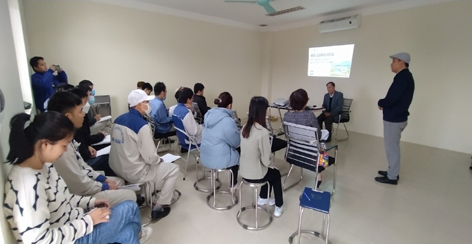 Hình 3. Chuyên gia tư vấn AHEAD đào tạo nhận thức ISO 22000:2018, ISO 14001:2015 kết hợp công cụ Kaizen tại Công ty Minh Quân.