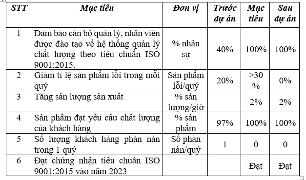 Kết thúc dự án, việc áp dụng HTQL chất lượng theo tiêu chuẩn ISO 9001:2015 đã đem lại hiệu quả tích cực đối với hoạt động sản xuất, kinh doanh của công ty PVN, là bước đệm lớn nhất trong việc liên kết hợp tác, mở đường cho nhiều hợp đồng quốc tế