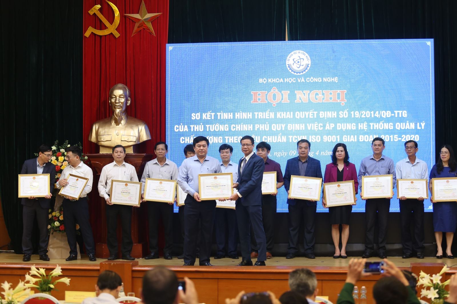 Trong khuôn khổ Hội nghị, Bộ KH&CN đã tặng Bằng khen của Bộ trưởng Bộ KH&CN cho 16 tập thể và 16 cá nhân đã có thành tích xuất sắc trong việc xây dựng, áp dụng HTQLCL theo tiêu chuẩn quốc gia TCVN ISO 9001 giai đoạn 2015 – 2020.