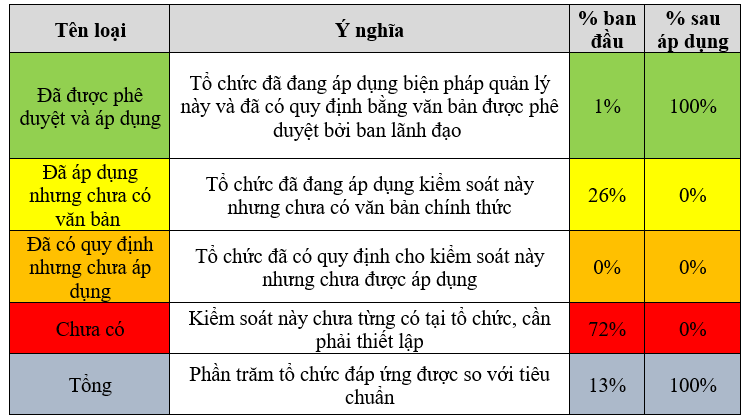 Sau khi áp dụng,  công ty đã tiến hành tổ chức đánh giá nội bộ, đoàn đánh giá đã nắm được các yêu cầu, tiến hành đánh giá khách quan và tìm ra một số điểm khuyến nghị, đề xuất cải tiến để hoạt động của HTQL chất lượng và an toàn thông tin hiệu quả hơn như: