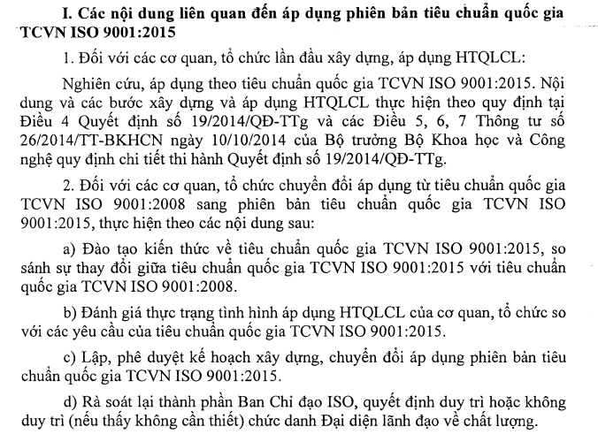 Công văn 3003/BKHCN-TĐC hướng dẫn áp dụng tiêu chuẩn TCVN ISO 9001:2015