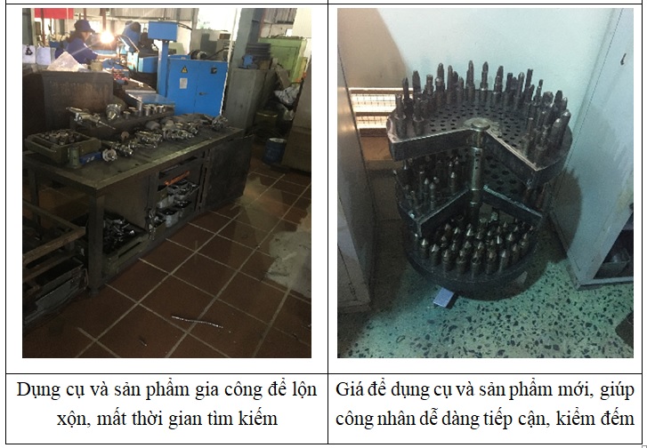 Sau 6 tháng nỗ lực, nhà máy đã nhận được những kết quả cải thiện rõ ràng. Khoảng cách vận chuyển bán thành phẩm giữa các tổ gia công được rút ngắn từ 146 mét trước khi cải tiến xuống còn 48 mét sau cải tiến; quãng đường vận chuyển giảm 98m. Việc cải thiện này có ý nghĩa rất lớn do sản lượng hàng năm khoảng 800 mũi khoan, mỗi mũi khoan nặng khoảng 19kg, tương đương với khối lượng vận chuyển khoảng 98 x 800 x 19 » 1,5 triệu kg.m.